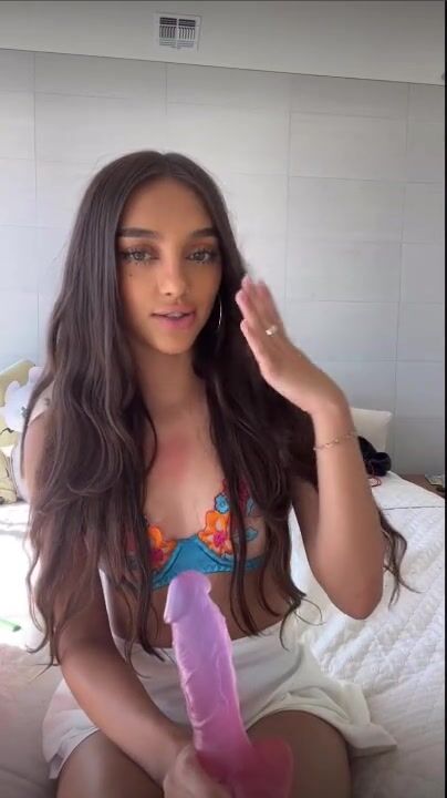 Hiitssenya Naughty Petite Girl Deeply Sucking a Thick Dildo on Bed Video