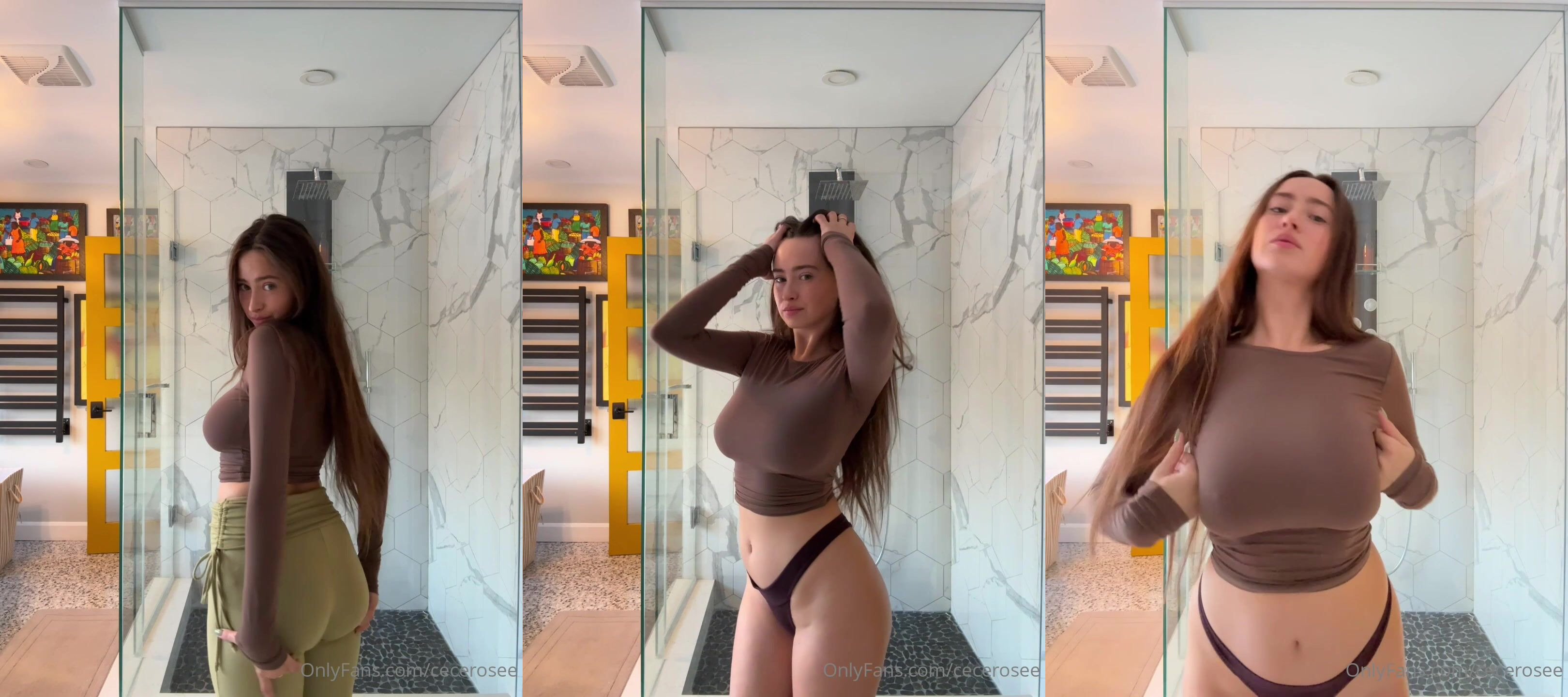 Cecilia Rose playing with juicy boobs making nipples horny through her top and takes off to show how curvy her tits are, Seen on viralxxxporn.com.