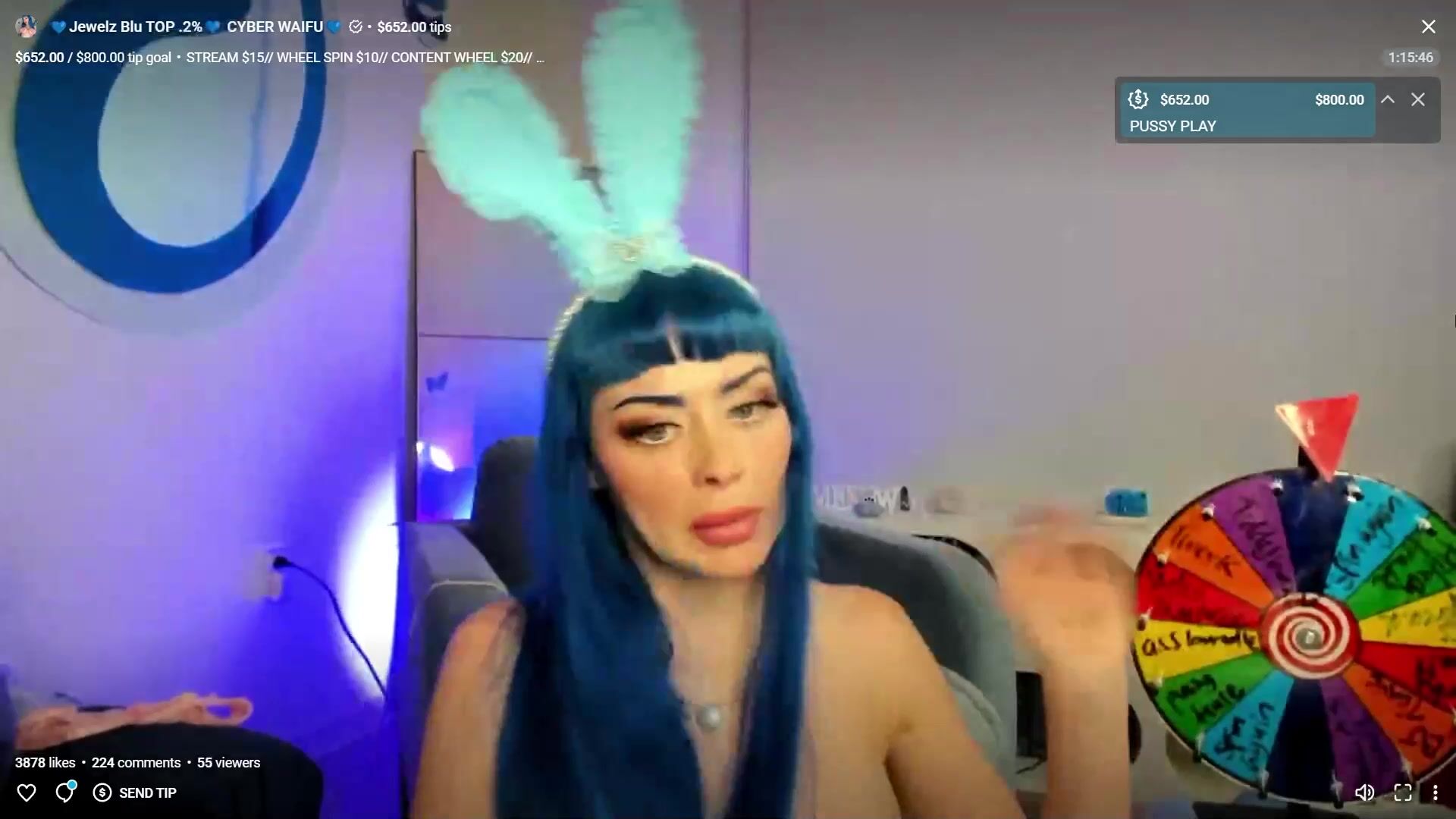 Description: Watch Jewelz Blu go wild in this live stream video as she teases with her blue vibrator.