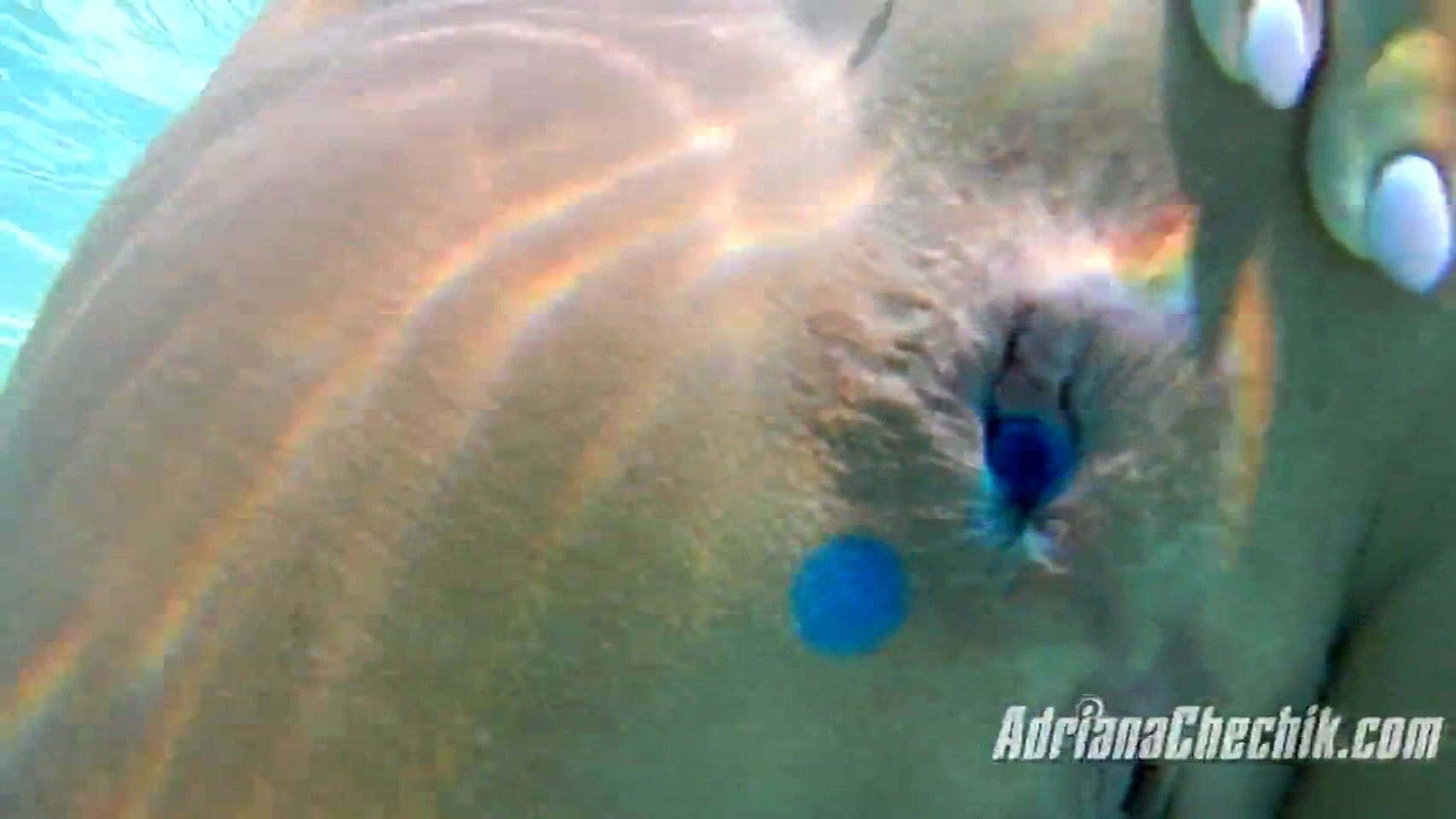 Curvy Goddess Adriana Chechik gets wet and wild in this poolside anal beads video, playing with her tight asshole underwater.