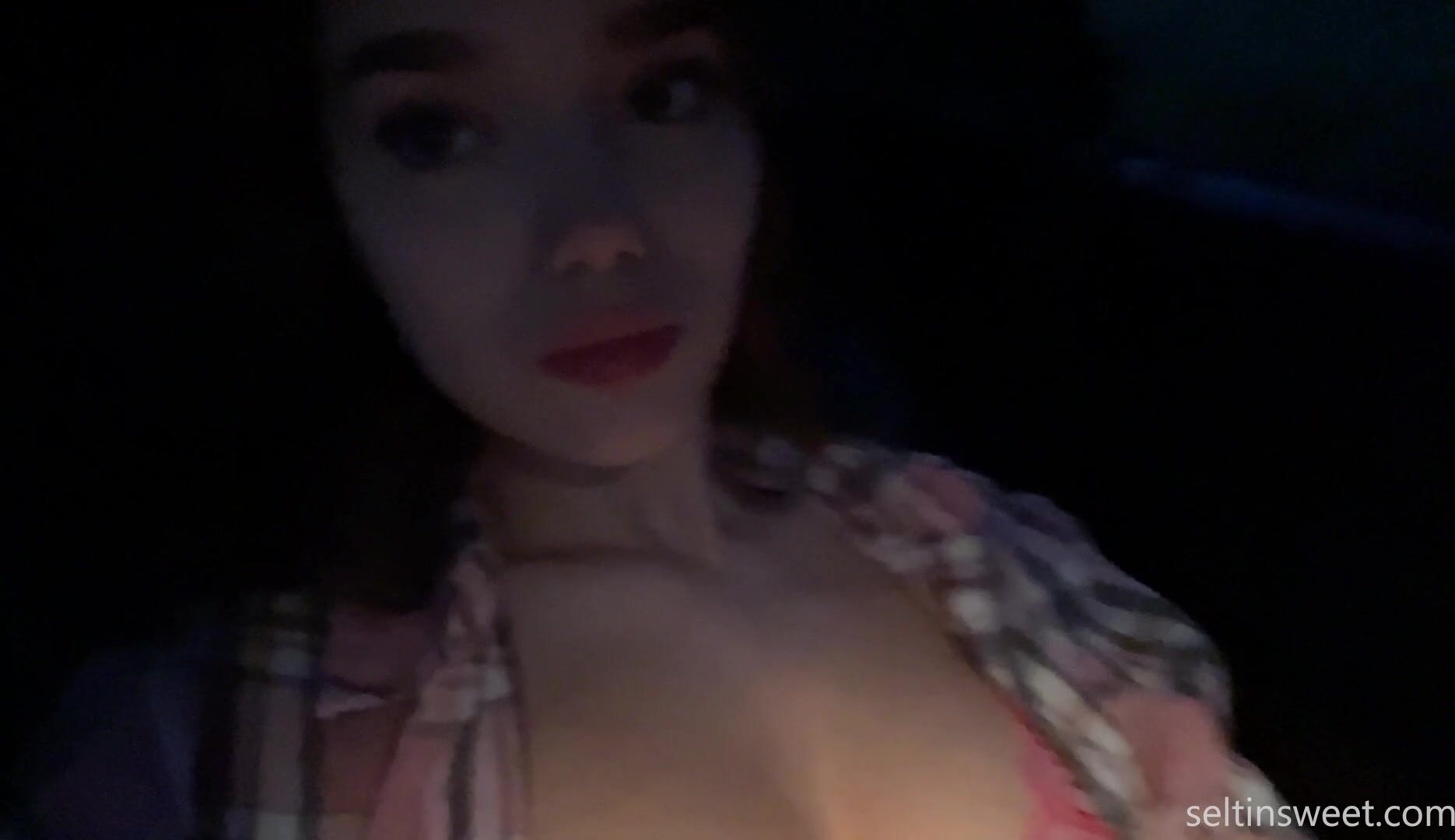 Seltinsweet teases her natural boobs and fingers her tight pussy in this intimate solo video with a seductive bedroom vibe.