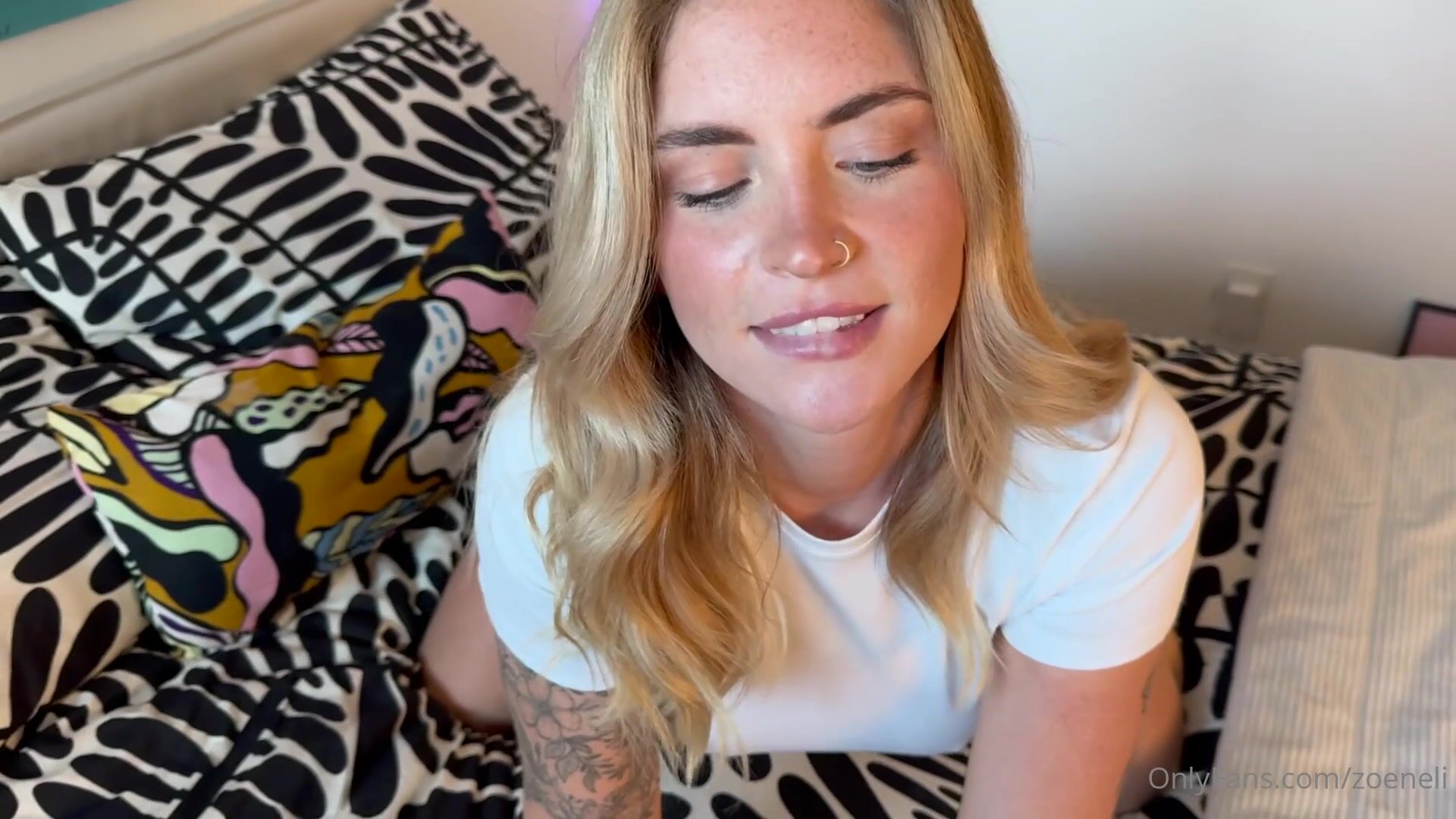 Description: Blonde zoeneli takes control in this steamy stepsister roleplay video, teasing her juicy ass before riding her lover’s hard cock in bed.