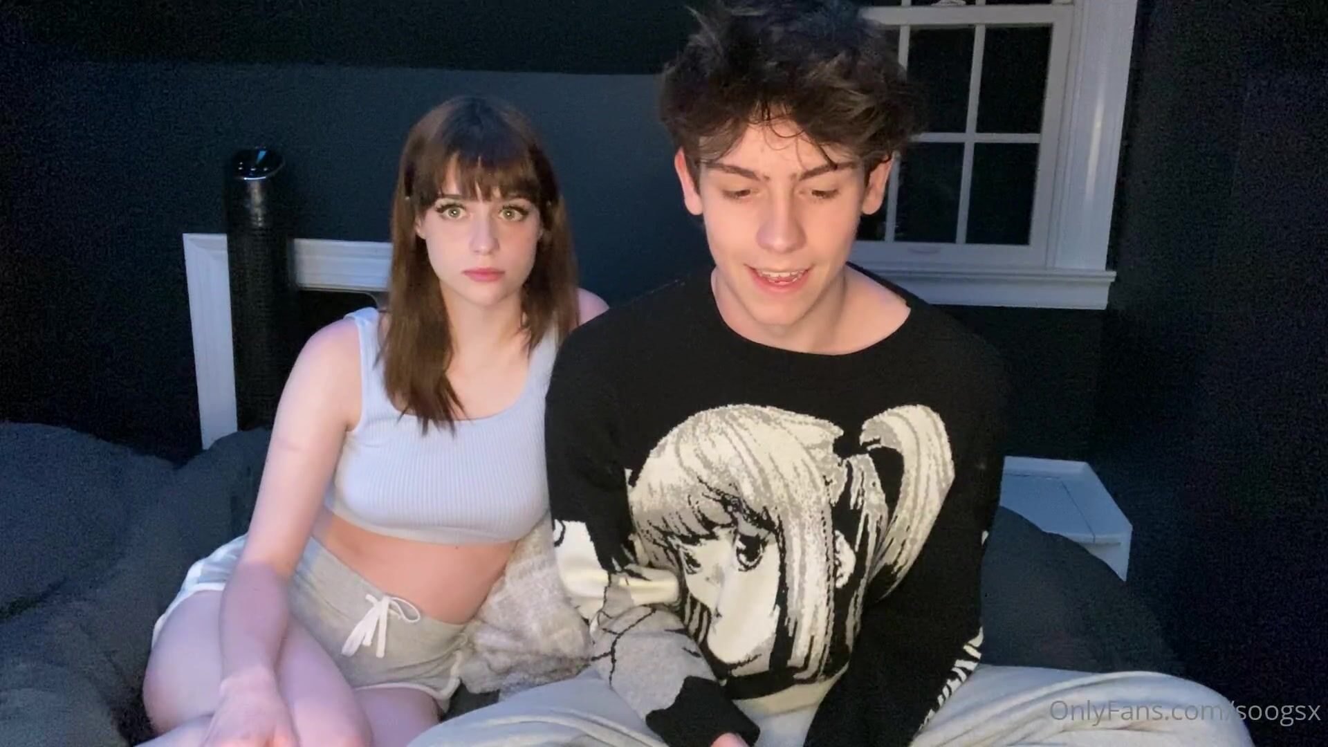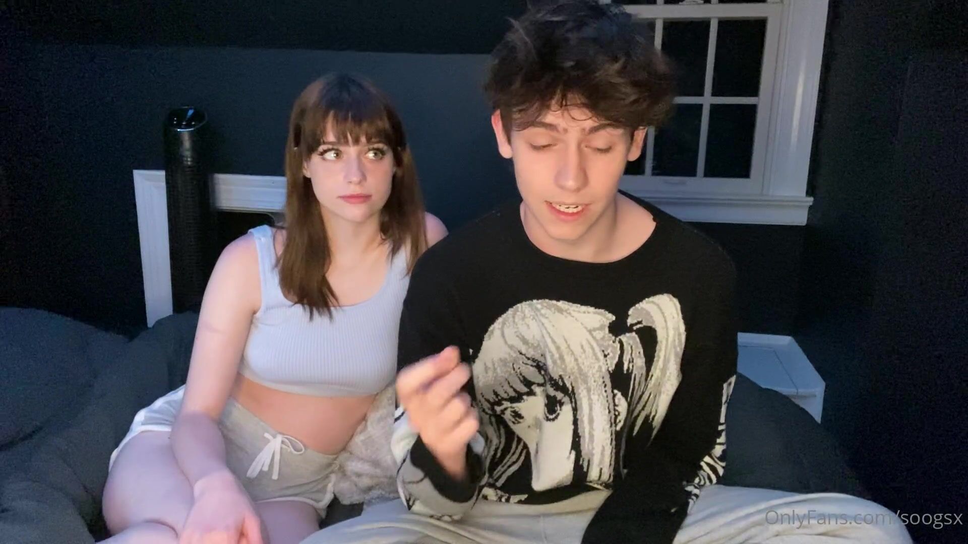 soogsx OnlyFans Petite Cutie in Crop Top Teasing in Bedroom with Guy in Livestream Video