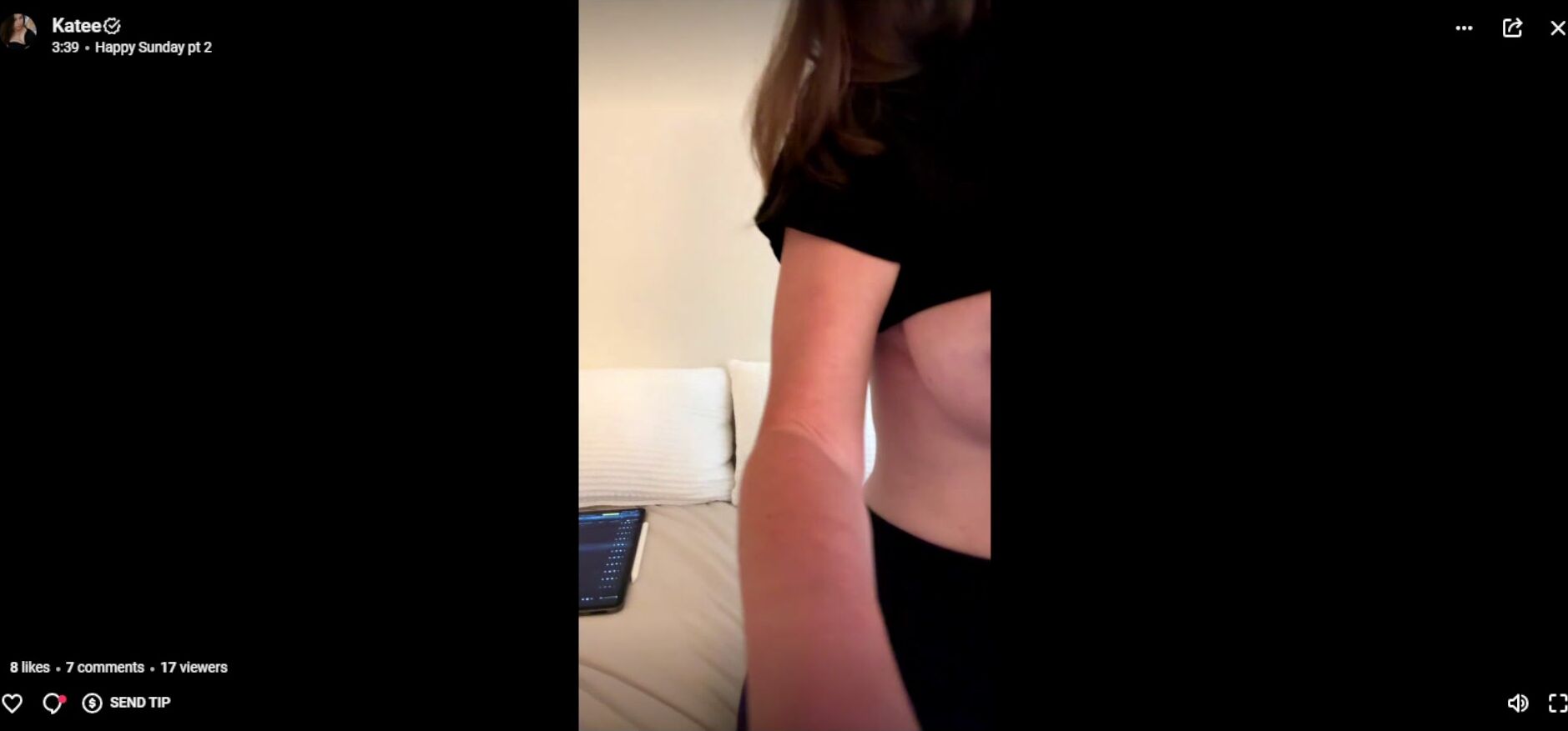 Curvy goddess Katee teases her wet pussy in a tight black outfit while showing her big tits in this seductive video.
