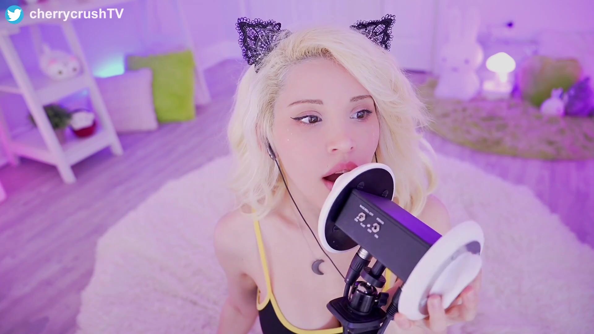 Watch Live Stream CherrycrushTV Blonde Doing Hot ASMR while wearing Fishnet Lingerie Video