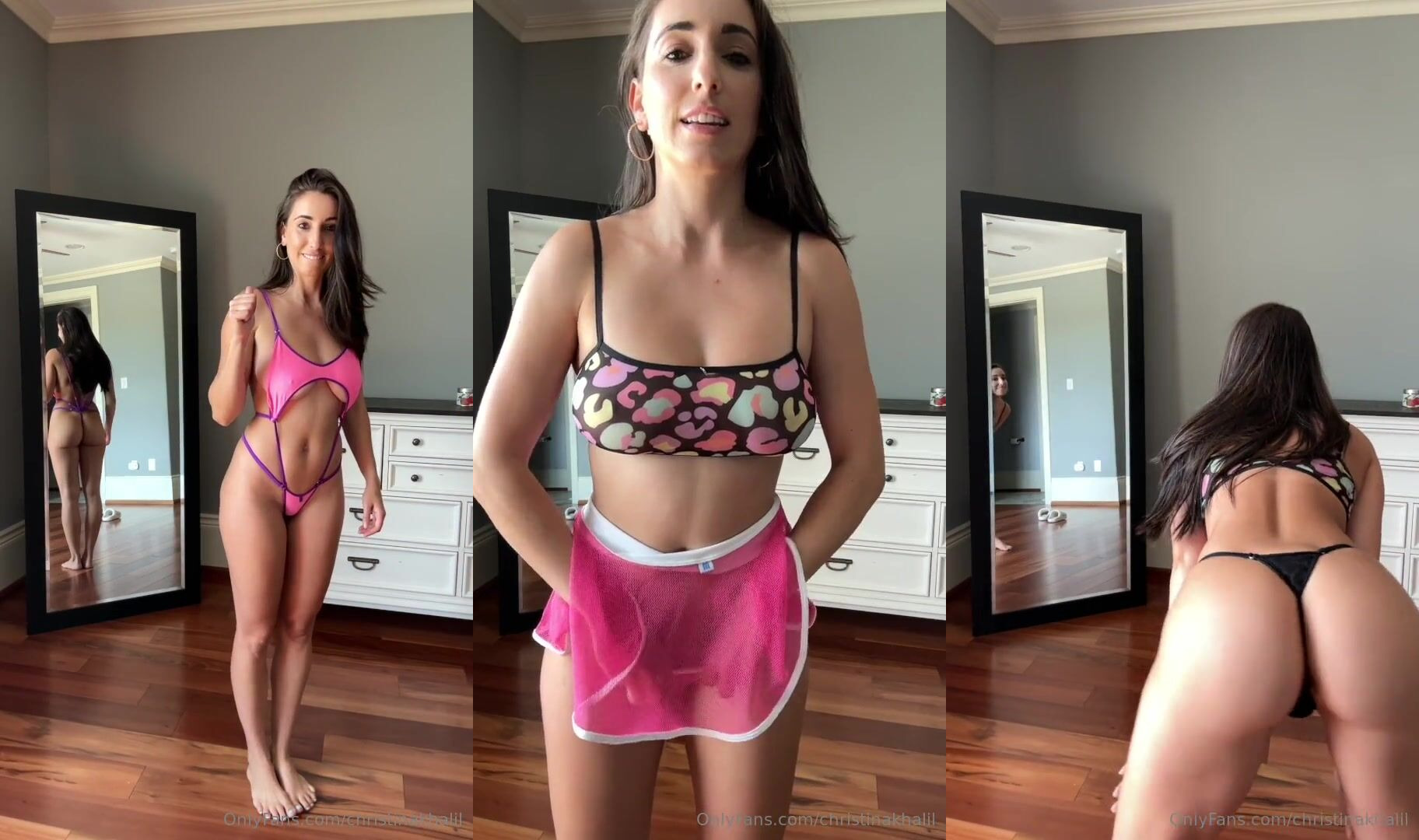 ChristinaKhalil teasing in a micro bikini and sexy lingerie shows off her curves in this seductive OnlyFans video.