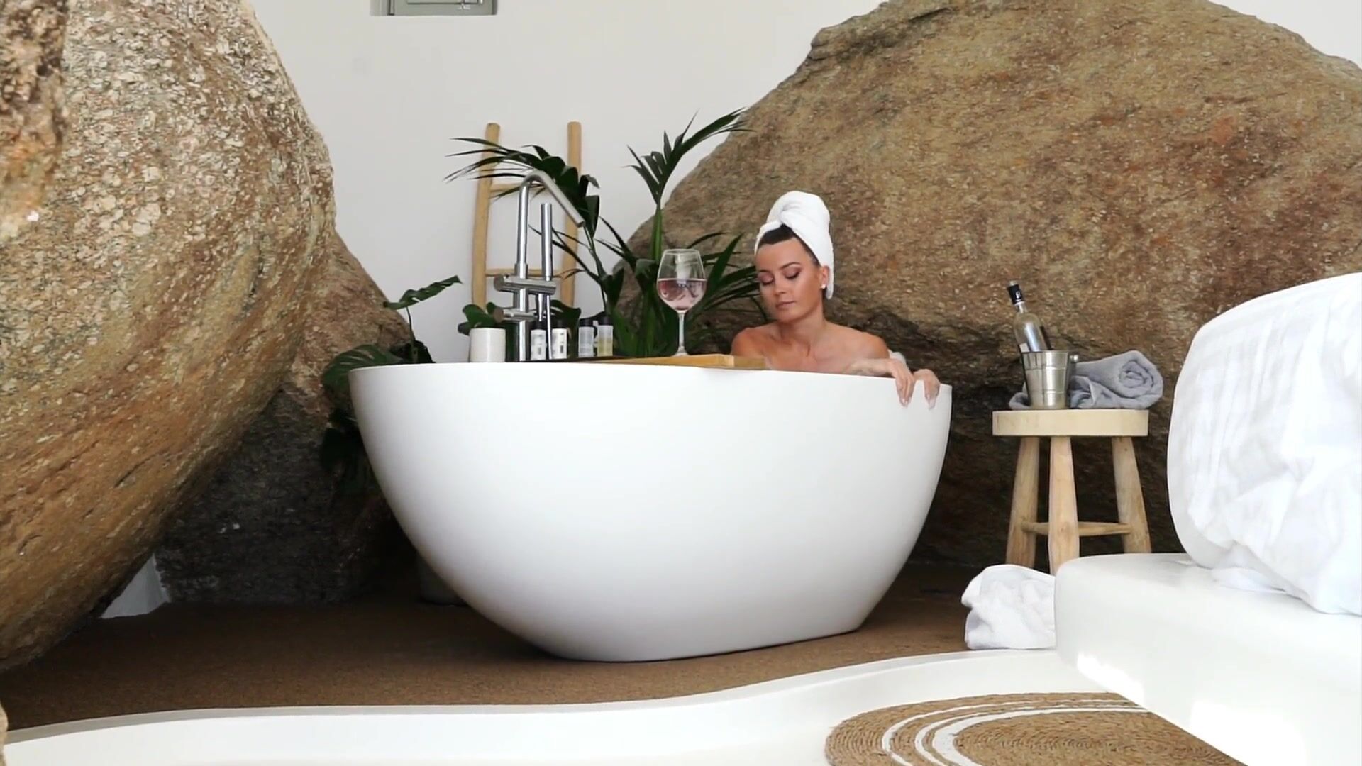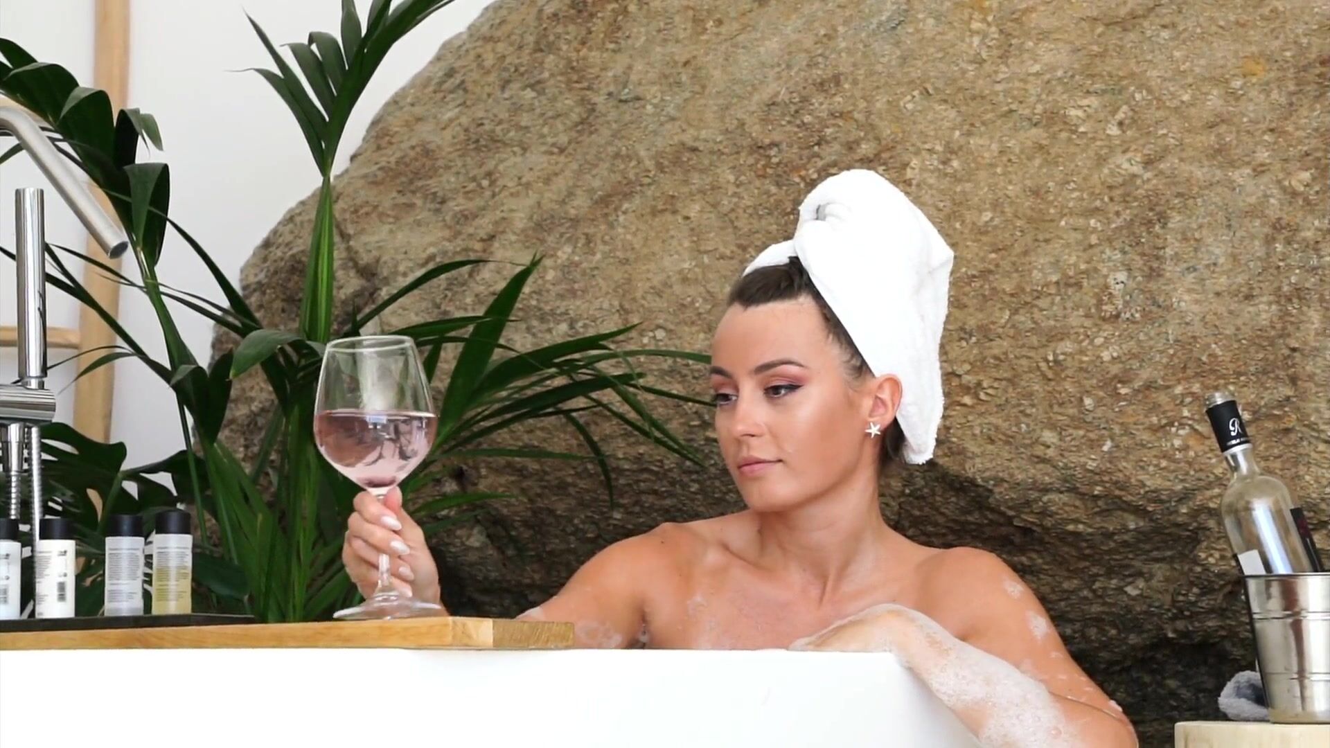 Anna Zapala naked in soapy bathtub teasing with wine glass in PPV video