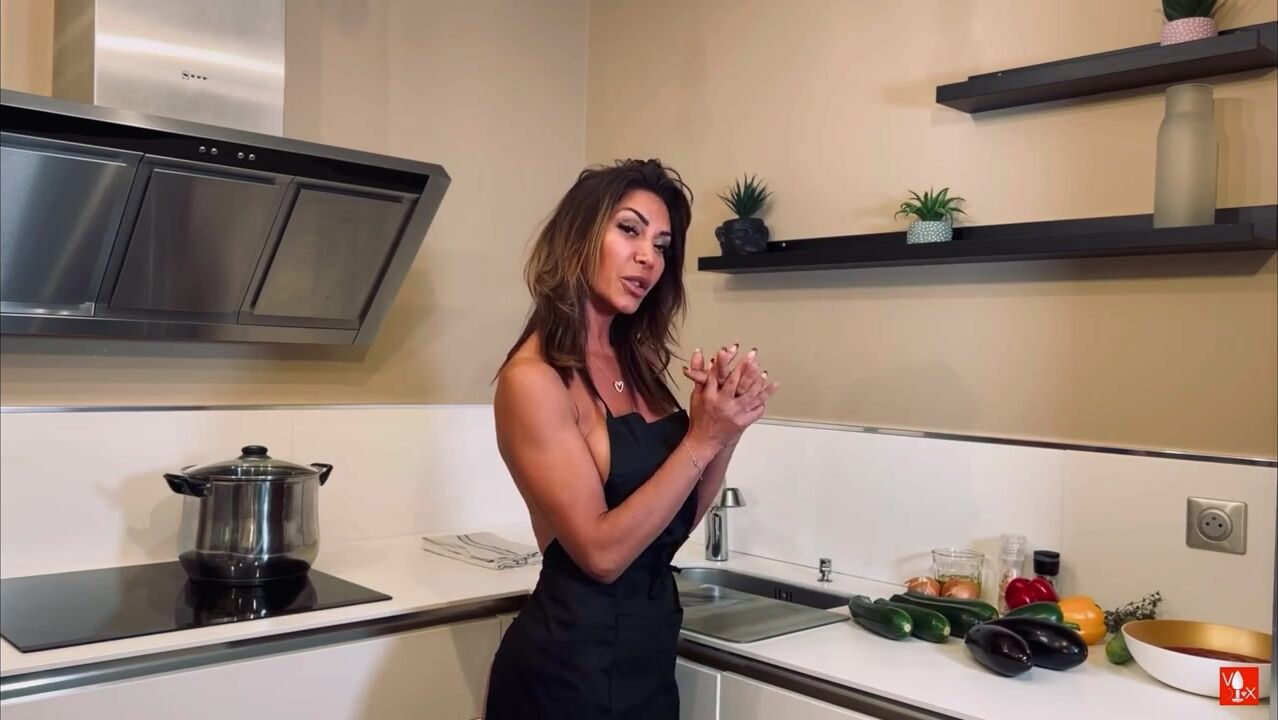 Vittoria Divine gets a creamy facial glaze while serving up a steamy kitchen fuck fest in this cum-drenched video