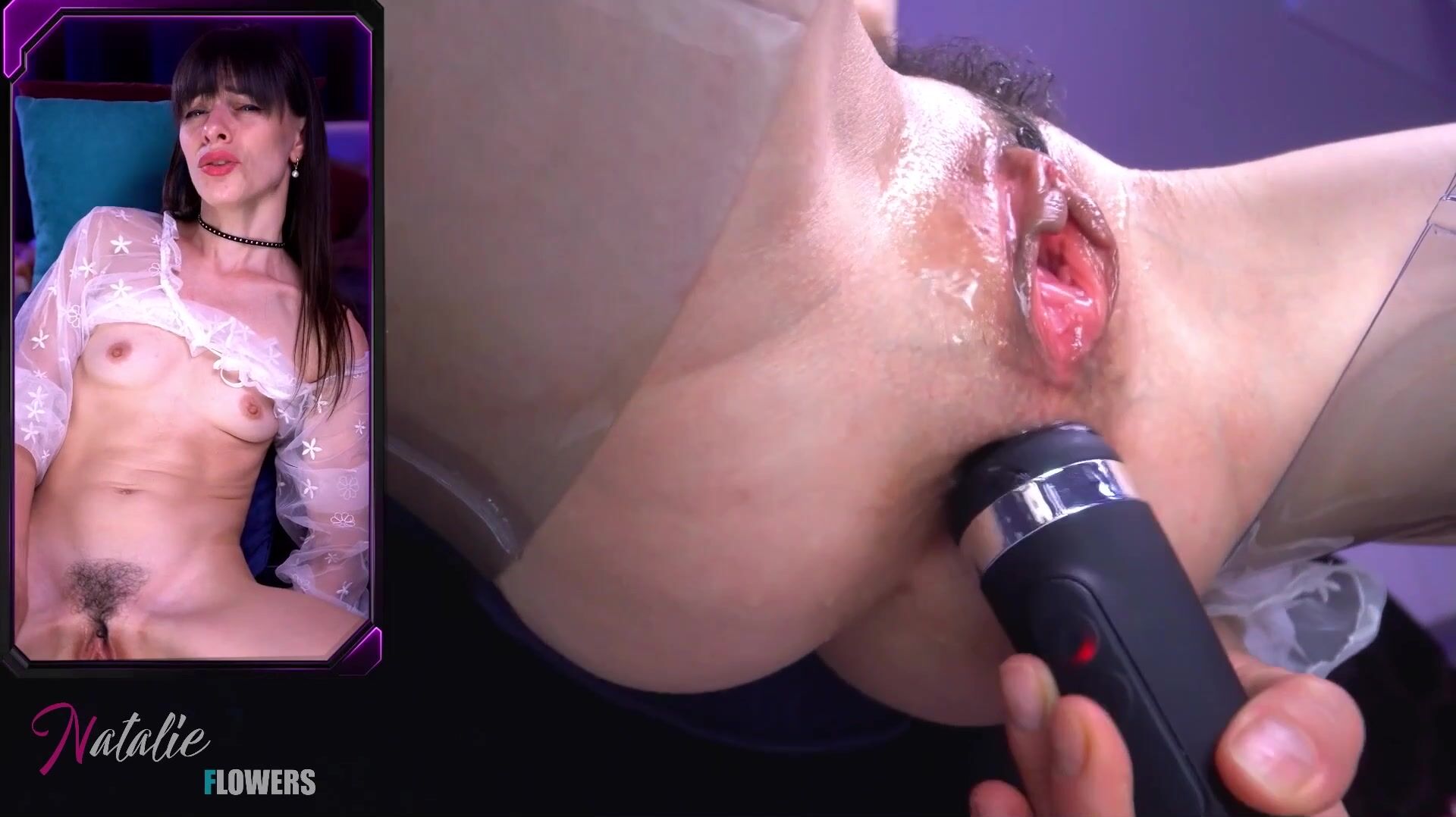 Natalie Flowers spreads and teases her perfect pink pussy in this leaked exclusive porn video, giving you a close-up view of her solo play action
