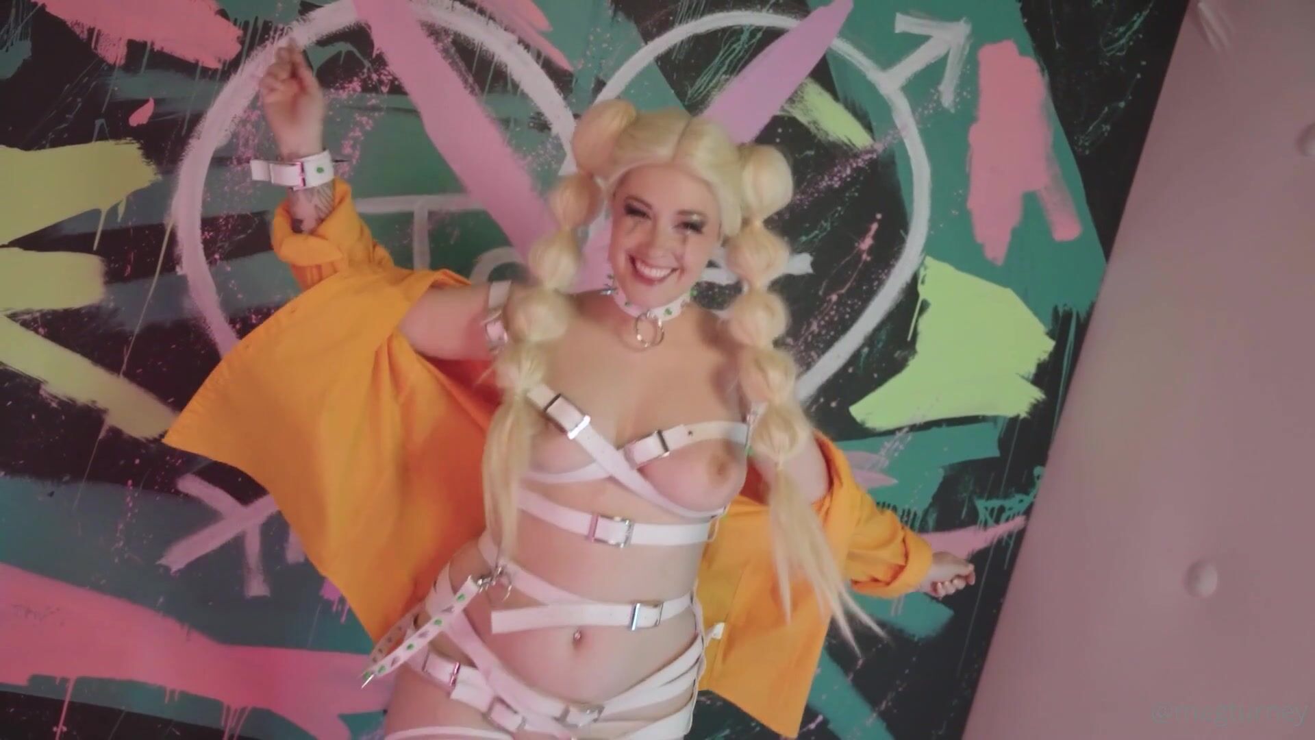 Meg Turney cosplays as naughty Harley Quinn in leaked OnlyFans video, teasing her dripping wet pussy for your viewing pleasure